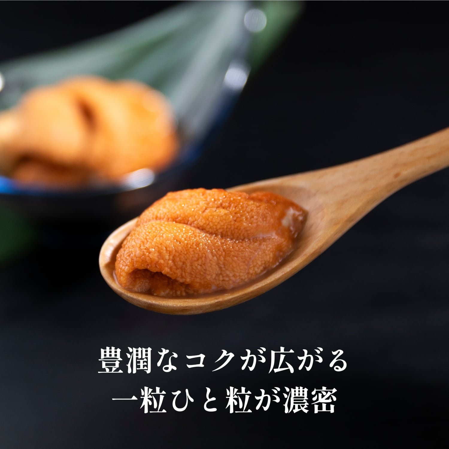 漁協が厳選して仕入れた最高品質の特上エゾバフンウニを無添加で塩水パックに仕立てた逸品です。濃厚な味わいと甘みが特徴で、そのまま食べるだけで至福のひとときをお楽しみいただけます。