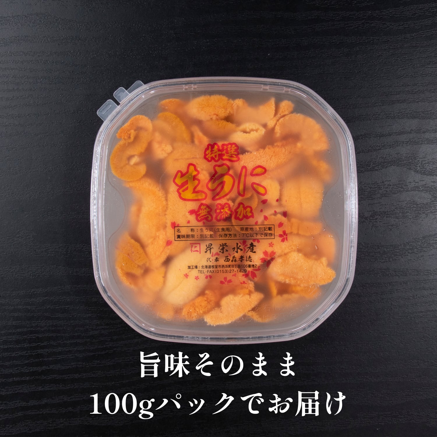 新鮮なウニをお届けするため、注文確定後に加工いたします。なるべく最短日でお届けを心掛けておりますが、悪天候で漁に出られない場合や漁獲量が少ない等の理由から、発送までに10日以上の十分なお時間を頂戴する場合もございます。