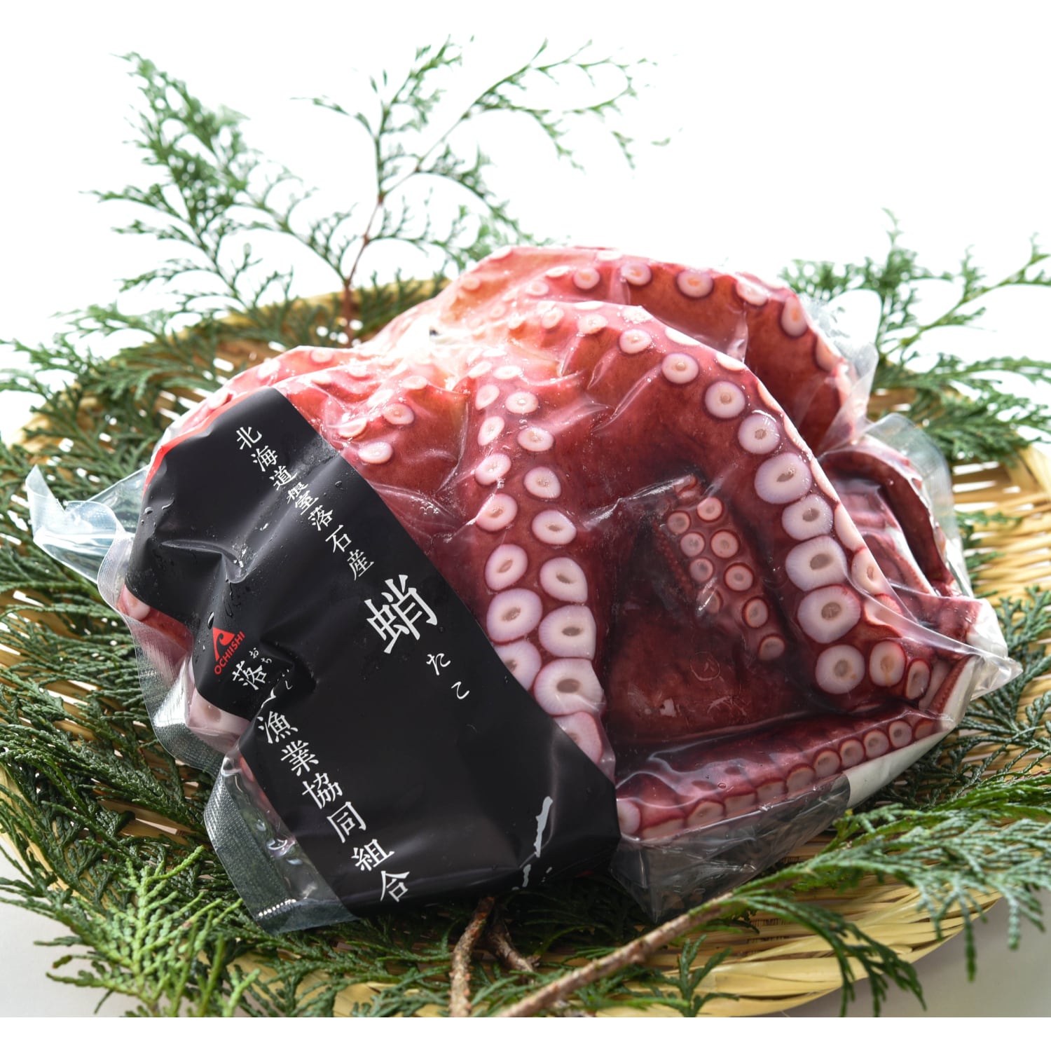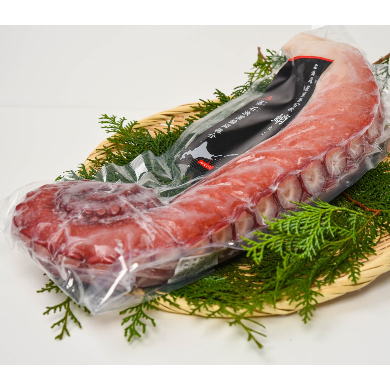 【水蛸たこ足】北海道根室市落石沖で獲れた新鮮な水だこを丁寧にボイルし、丸ごと真空パックで冷凍。1kg前後の大ぶりな足は濃厚な旨味と弾力のある食感が魅力です。タウリンやコラーゲンを豊富に含み、美容・健康にも嬉しい一品。刺身や酢の物、煮物、パスタなど、幅広い料理でお楽しみいただけます。